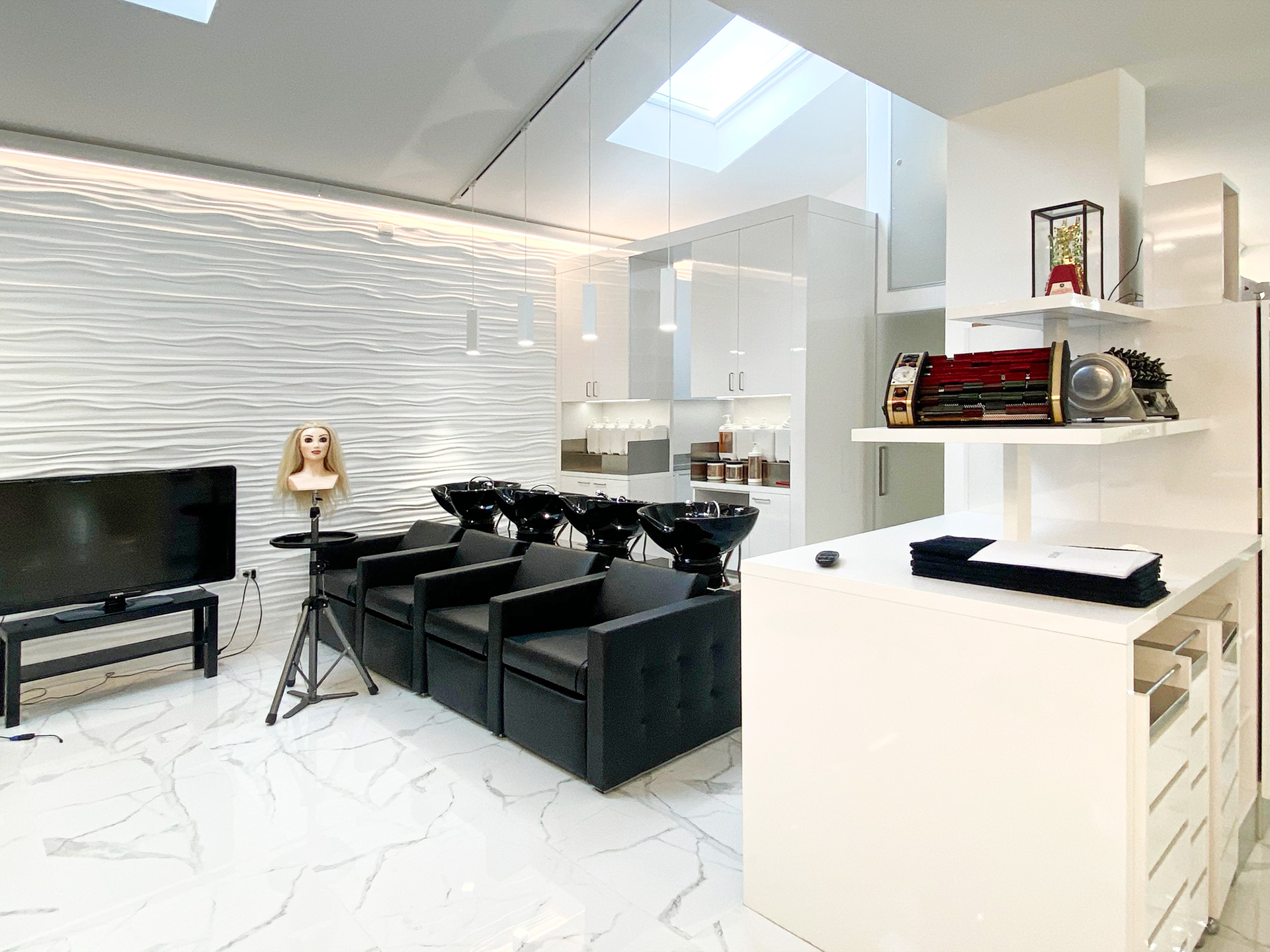 Abbiamo progettato questo salone con uno stile essenziale e moderno, privilegiando colori chiari per esaltare la luminosità e creare un ambiente accogliente e raffinato. Ogni elemento è stato studiato per valorizzare la figura professionale del conducente, un talento riconosciuto a livello internazionale e campione europeo, con una specializzazione nella colorazione.